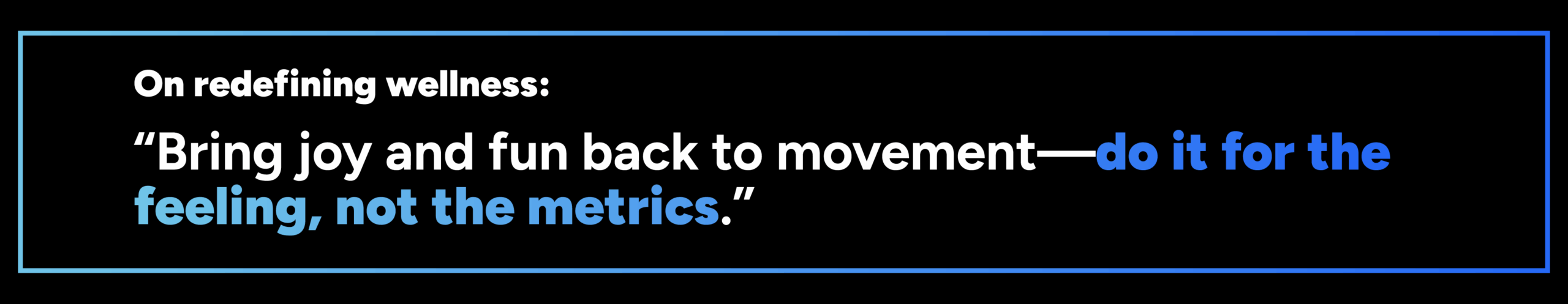 Ty Haney: I still come back to a phrase we used early on: Free fitness from performance. It's about bringing joy and fun back to movement—doing it for the feeling, not the metrics. That idea still feels fresh because not many people have truly taken up that lane. So that's where we're heading: inspiring movement through joy, not pressure.